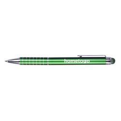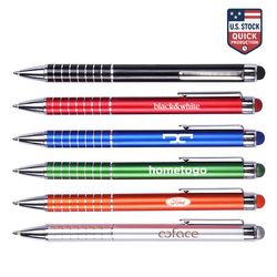 This twist action ballpoint pen features a stylus with color matching tip. It is made of aluminum with many color to choose from. It is compatible with iPhone, Android mobile devices, Windows tablets, touch-enabled computers and most other capacitive touchscreen devices which can receive stylus input.