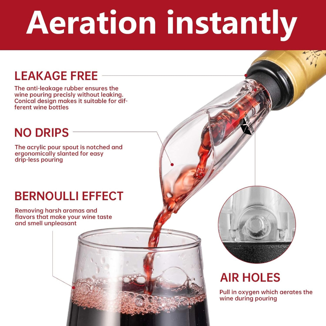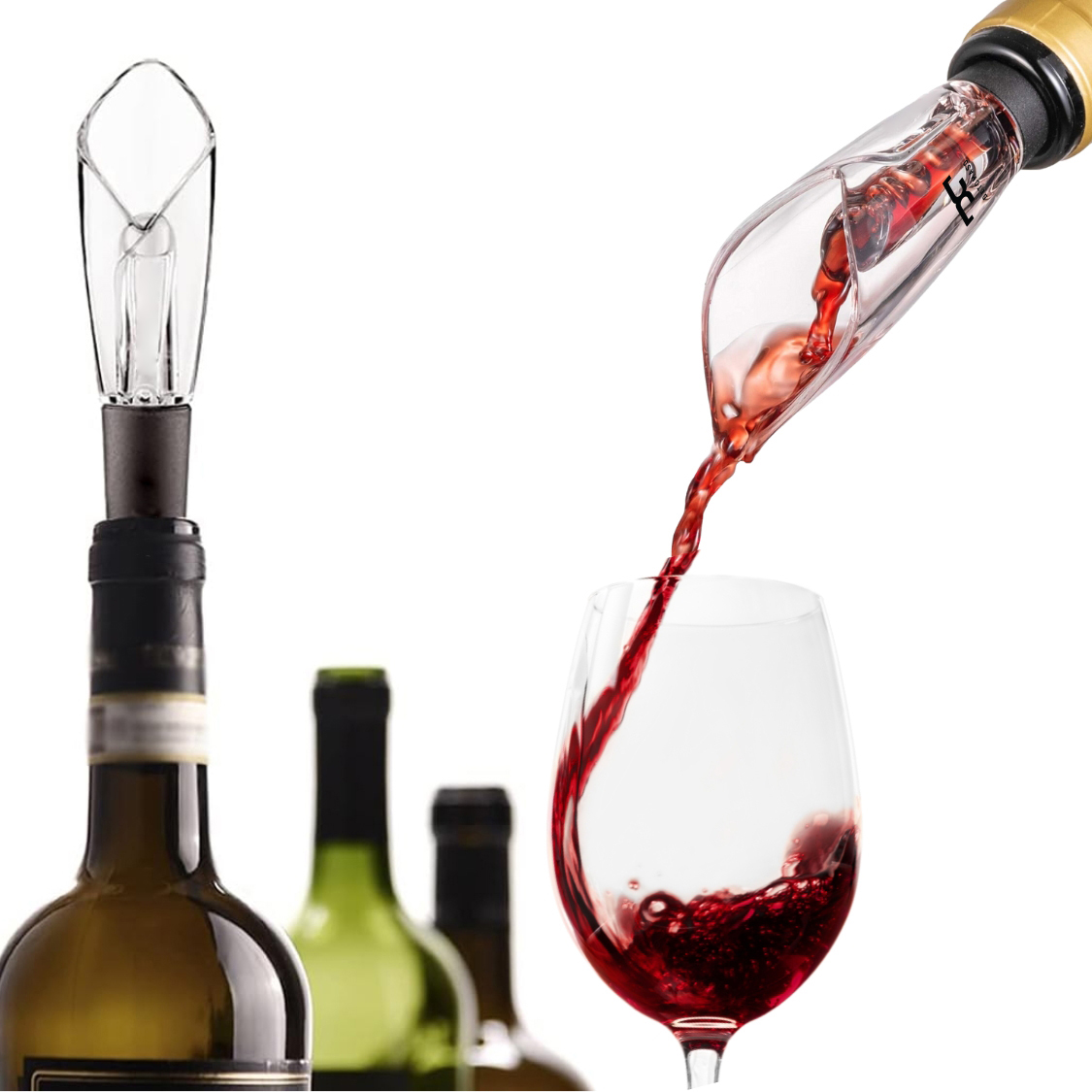 The WineVault Tulip-Style Wine Aerator Pourer combines elegance and functionality. Its unique tulip-inspired design enhances wine presentation while instantly aerating as you pour, elevating flavor and aroma. Made from food-grade materials and designed to fit most wine bottles, it's fully customizable for logos or branding, making it ideal for gifting or promotions. Weight: 27g(±5g). Certification: FCC, ROHS, FDA, ULUGS, LFGB, LVD, ERP, DOE.
