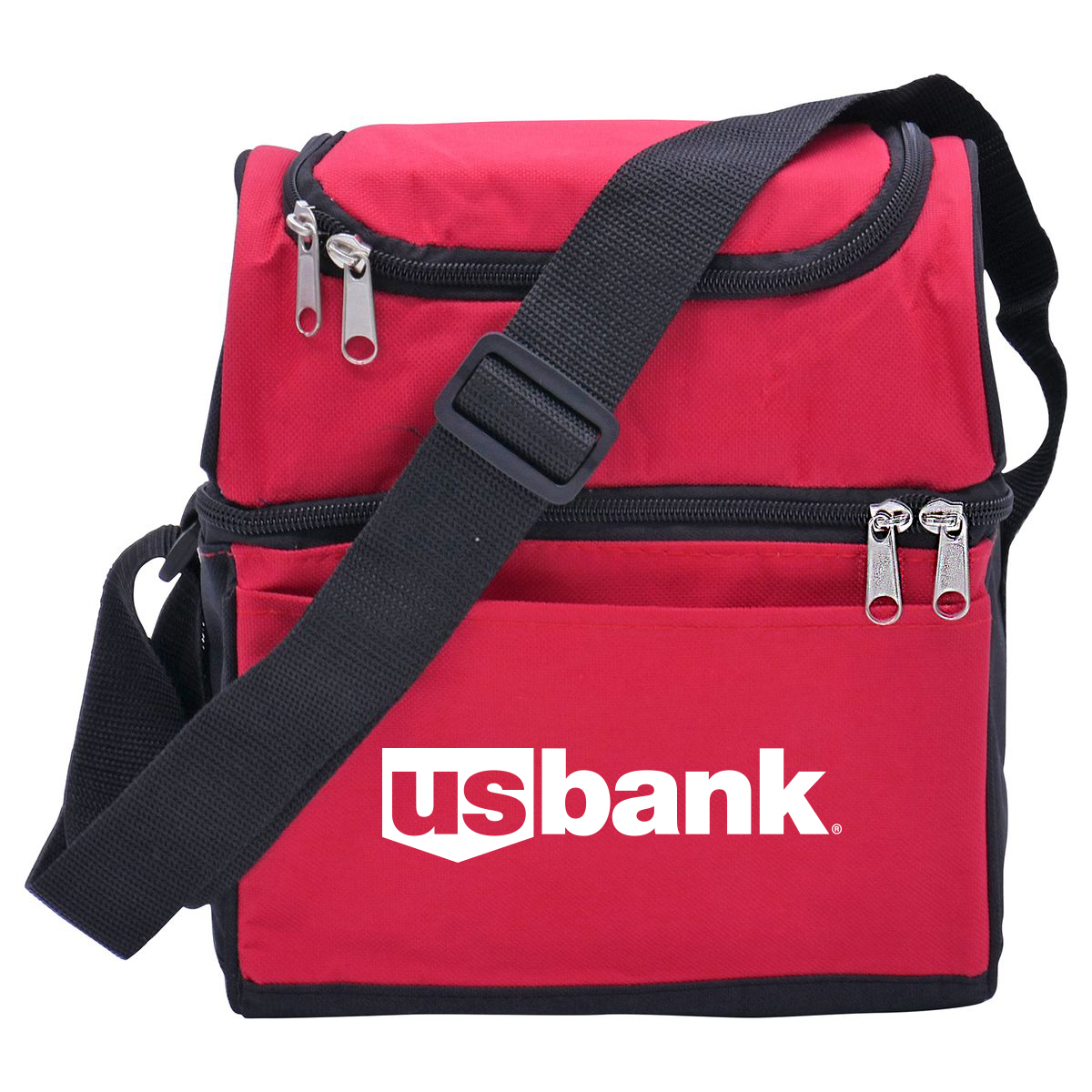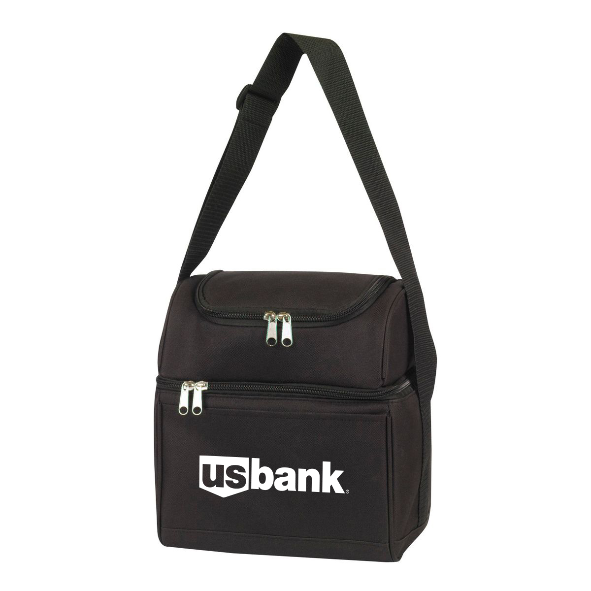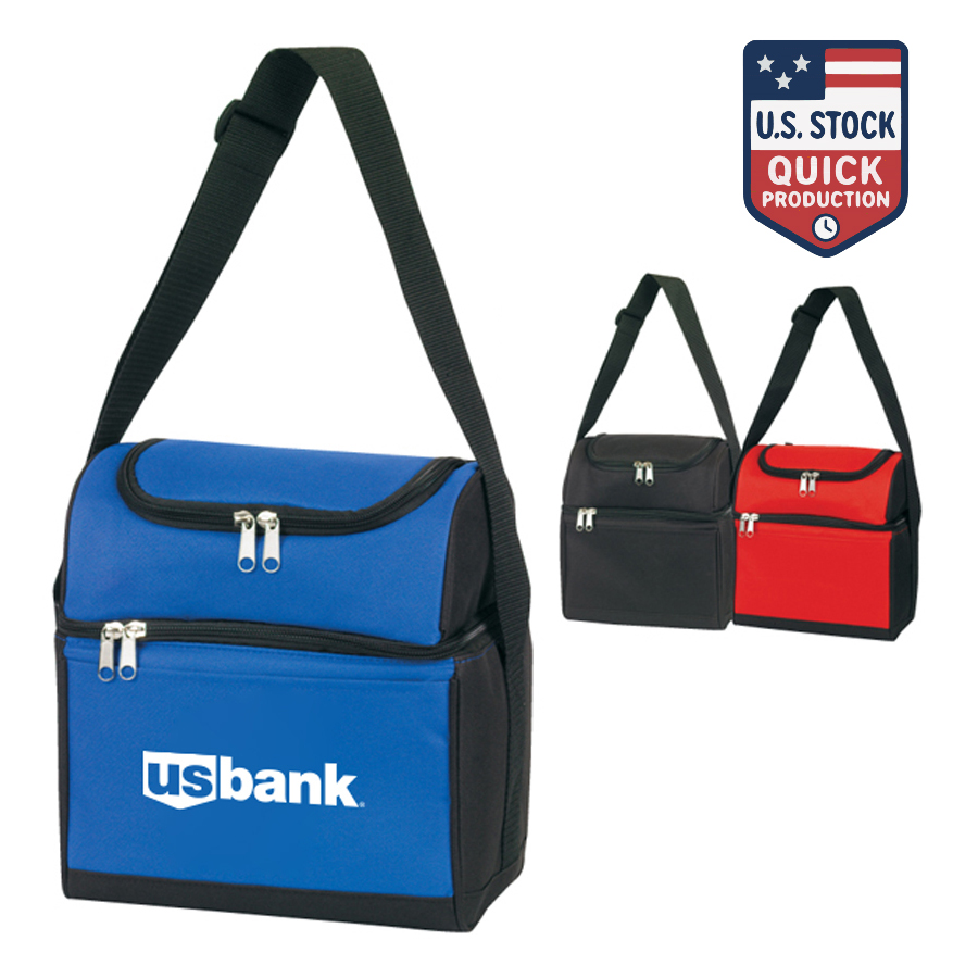This dual-compartment cooler bag is built for outdoor activities, travel, and day trips. Made from durable 600D polyester with a lead-free PEVA lining, it features two fully insulated compartments with double zippers to separate items by size or temperature. Additional features include an open front pocket, back mesh pocket, and an adjustable shoulder strap (22"-41") for comfortable carrying. Heat-sealed for leakproof performance. Customizable with screen print decoration. Adjustable Strap Length: 22 to 41 inches.