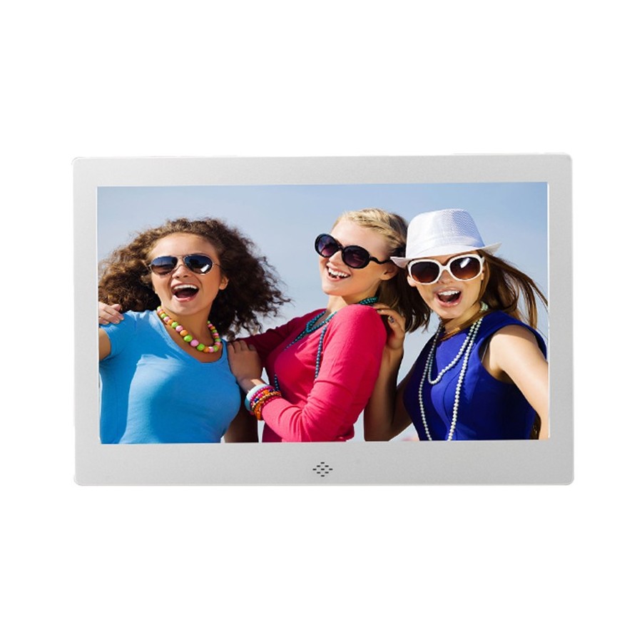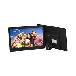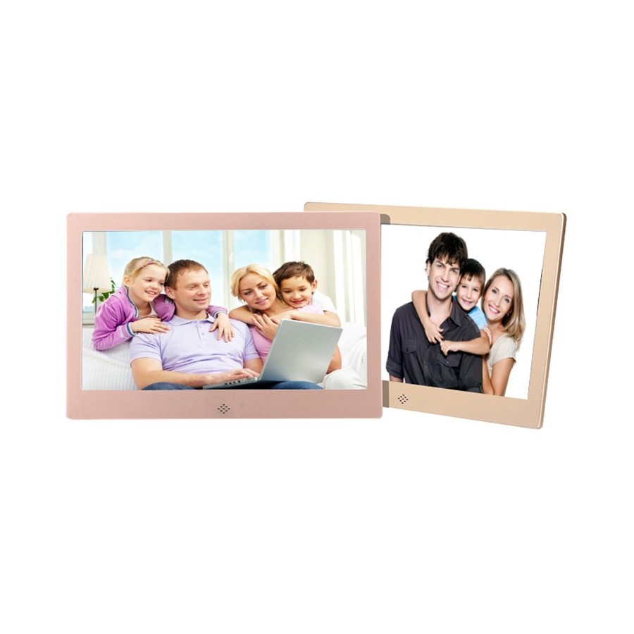 These metal 10" digital picture frames not only display your images in a dynamic way, but they can also play videos and music, and automatically play slide shows with background music. Whether you choose to use them as a desktop item or hang them on the wall, these frames offer a continuous loop of images or videos. They create unique and memorable slide shows that can promote your company or products and are perfect for any office or waiting room, restaurant or hotel lobby, or as awards or gifts. Picture frame does not come with memory included, but memory (SD or USB) can be added at an additional cost.
