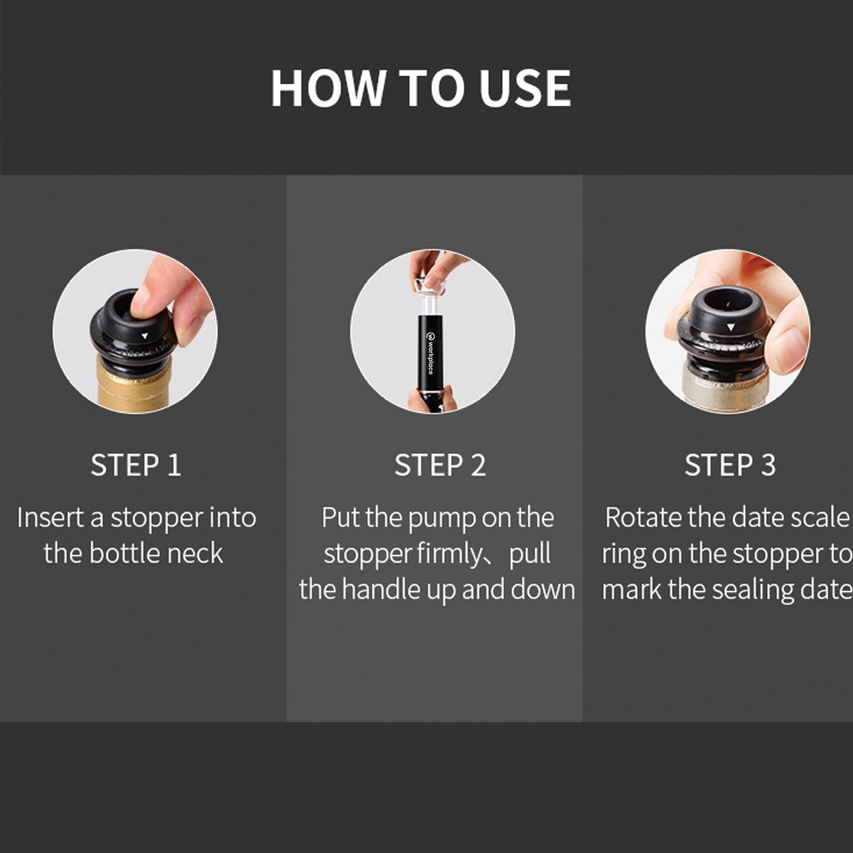 Keep your wine fresh for up to a week with the WineVault One Pump, One Plug Wine Preserver. This easy-to-use system removes air to preserve flavor and aroma. The compact mini stopper fits neatly in your fridge, while the built-in date marker helps track freshness. Made from durable ABS and silica gel, it's a must-have for wine lovers. Weight: pump: 60g (±10g); stopper: 13g. Accessory: WINE STOPPER*1pcs. Certification: FCC ROHS, FDA, ULUGS, LFGB, LVD, ERP, DOE.