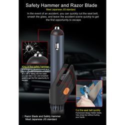 The Car Safety Hammer is an essential multi-tool designed to enhance vehicle safety. Combining a window breaker, seat belt cutter, dual USB car charger, and air purifier, it provides peace of mind for every journey. Ideal for emergencies, it ensures you're prepared for unexpected situations on the road. Compact and easy to store in your car, it's the perfect addition to any safety kit. Customizable for branding, making it a great promotional product. Weight: 60 g. Accessory: User Manual. User Manual: yes. Certification: CE FCC ROSH.