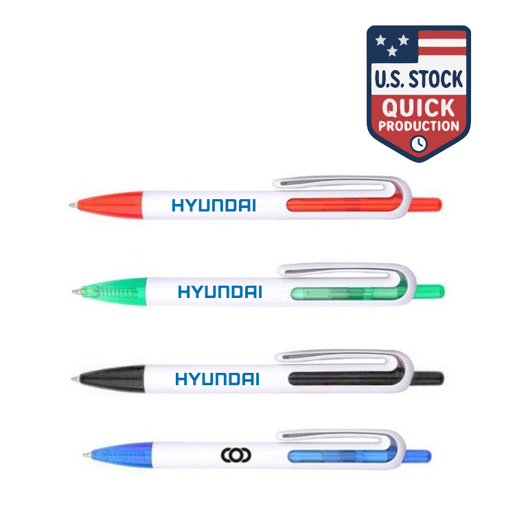 This pen features a solid white barrel with a translucent inner tube and a color tip. It also has a clip for easy carrying and a large imprint area for maximum visibility of your company's logo or message.