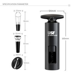 Get everything you need for wine enjoyment in one set. This Combo Set includes a self-pull wine opener, foil cutter, wine pourer, and wine stopper. Designed for efficiency and convenience, it's perfect for home use, events, or corporate gifting, with custom branding options available. Weight: 151g. Accessory: SP-016 Vacuum suction bottle plug WP-015 wine dispenser. User Manual: individual user manual. Certification: FCC ROHS, FDA, ULUGS, LFGB, LVD, ERP, DOE.