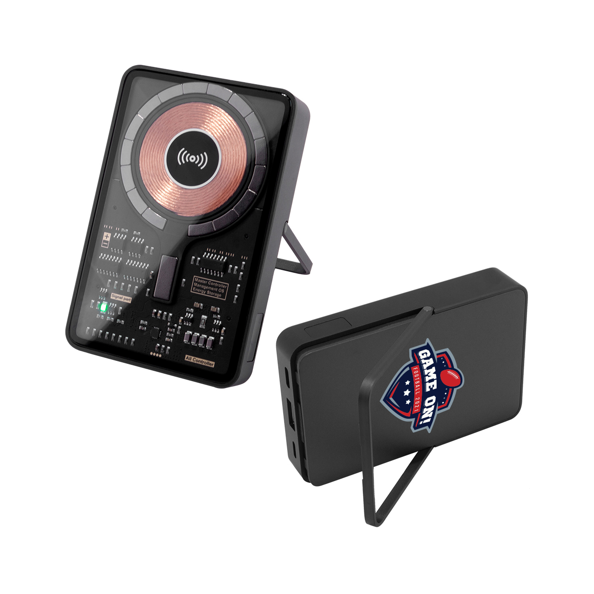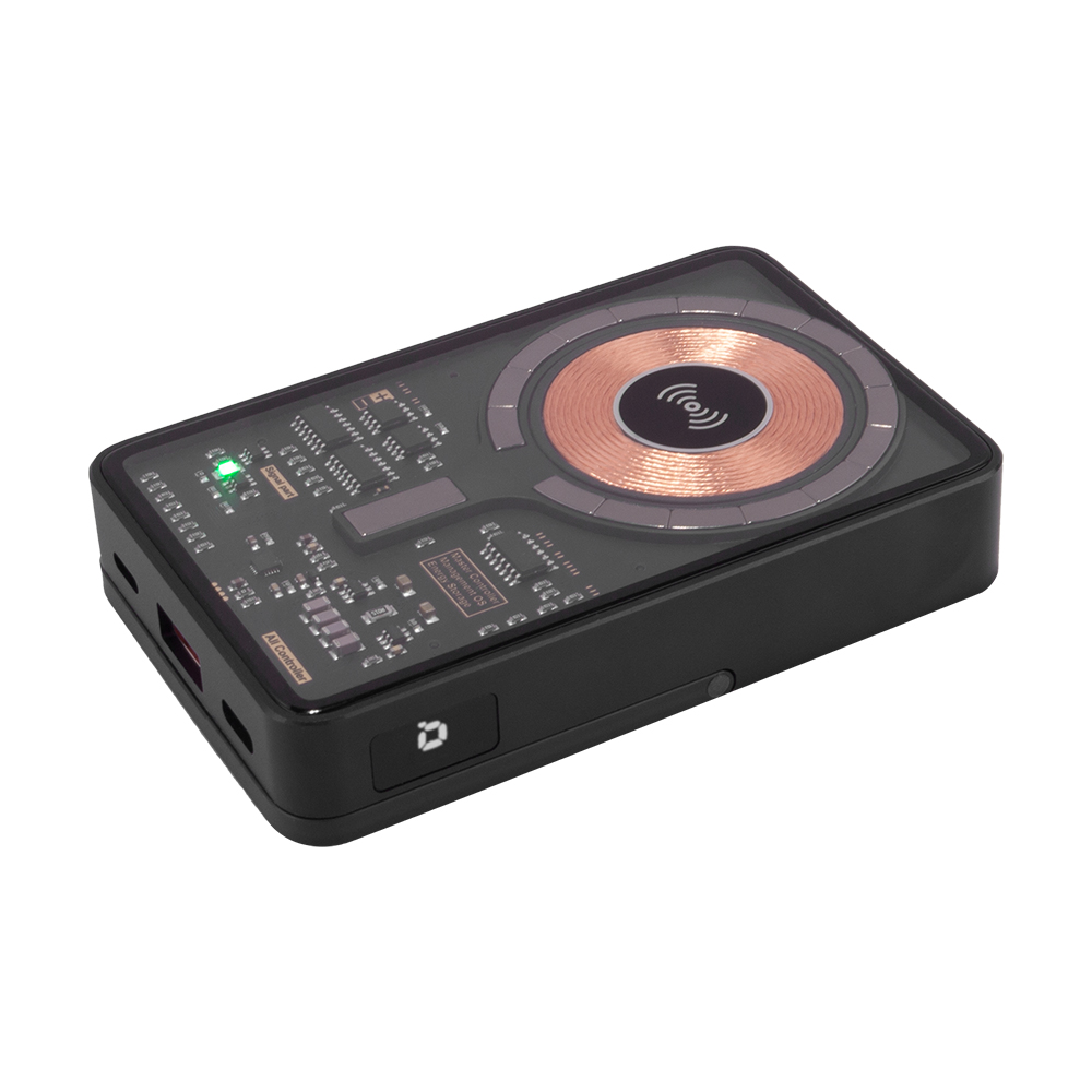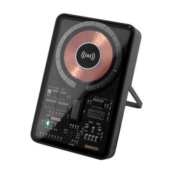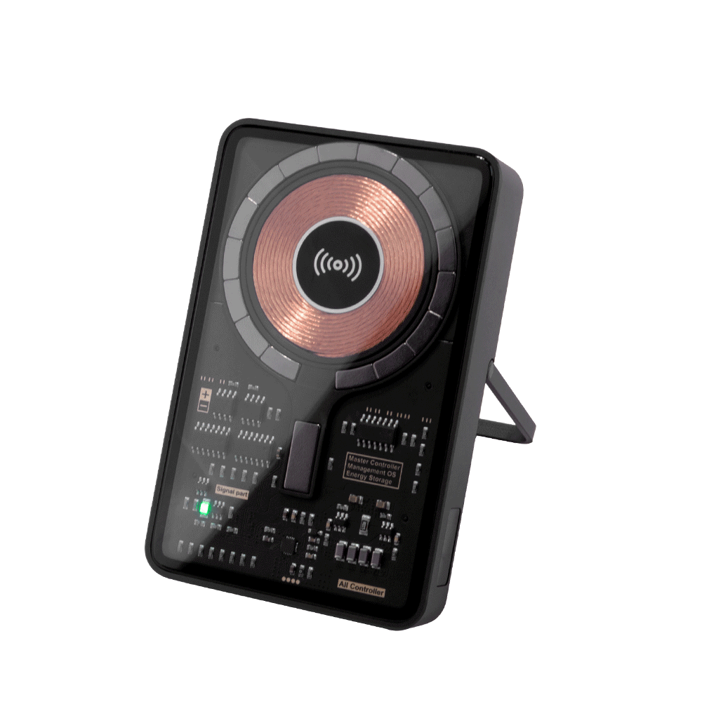 This premium 10,000mAh power bank features a sleek tempered glass design with a metallic edge, making it an impressive and functional gift for engineers, executives, or tech lovers. Showcasing visible internal components like a modern art display, it delivers 15W MagSafe wireless charging for iPhone 12 and newer models, ensuring fast, magnetic alignment. The power bank also supports 20W wired charging via USB-C or USB-A ports and can simultaneously charge multiple devices. A built-in phone stand adds extra functionality for video calls, streaming, and hands-free use, making this an essential gadget for those who value both style and performance.